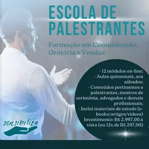 Você sonha em se tornar um palestrante de sucesso e transformar suas habilidades de comunicação em uma carreira lucrativa? A Escola de Palestrantes é o curso perfeito para você! Neste programa completo, ensinamos passo a passo como desenvolver suas habilidades de comunicação, dominar a arte de fala...